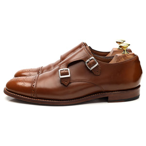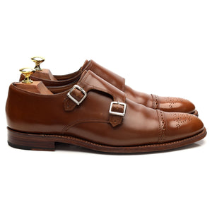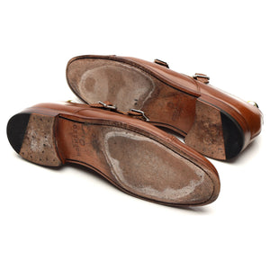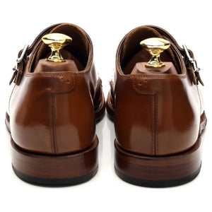 Grenson 'Mabel' double buckle monk strap in light brown polished calf. In excellent used condition, showing minor signs of wear.