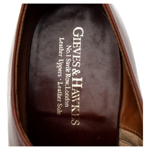 Cheaney manufactured for Gieves & Hawkes cap toe oxford in brown calf. In excellent used condition, showing minor signs of wear.