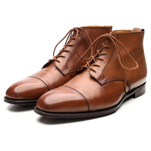 Crockett & Jones 'Tees' cap toe boots in tan brown antique calf. In excellent condition.