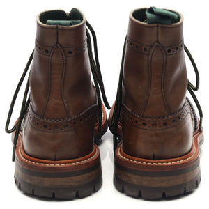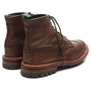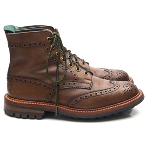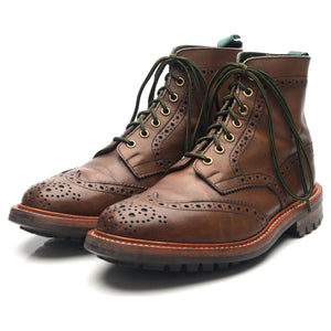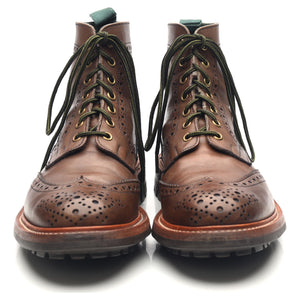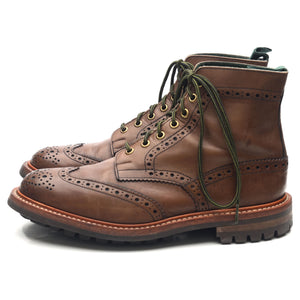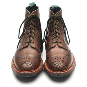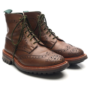Tricker's 'Stow' brogue boots in brown calf. In excellent used condition, showing minor signs of wear.