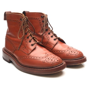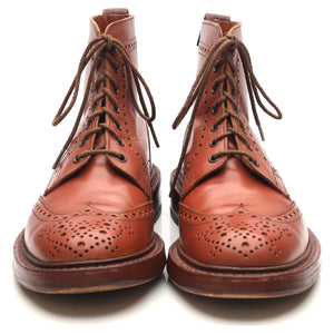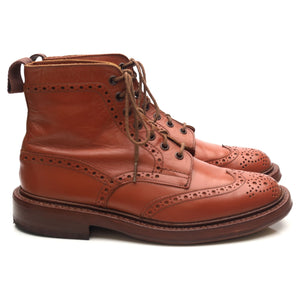 Tricker's 'Malton' brogue boots in C-Shade tan brown calf. In excellent used condition, showing minor signs of wear.