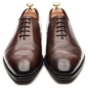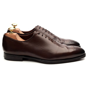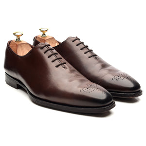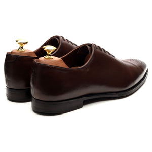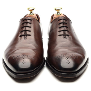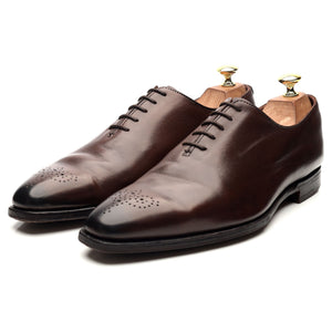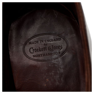 Crockett & Jones 'Weymouth 2' wholecut oxford in dark brown antique calf. In very good used condition, showing creasing across the vamps and heels and moderate signs of wear.