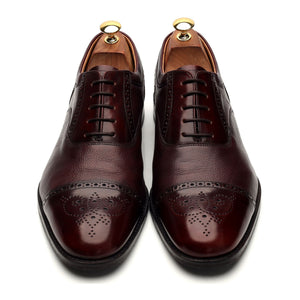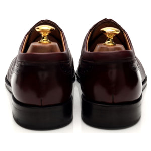 Loake Lifestyle 'Woodstock' cap toe oxford semi brogues in burgundy polished and grain calf. In excellent used condition, showing minor signs of wear.