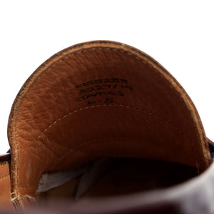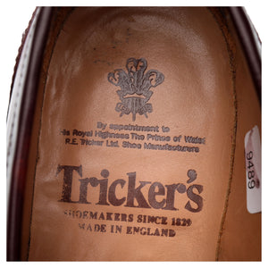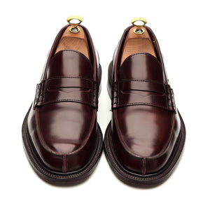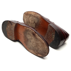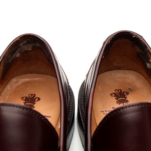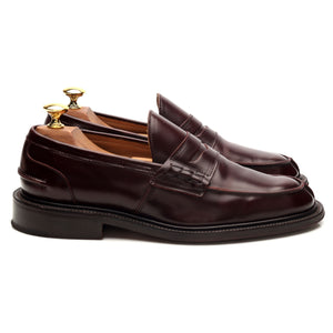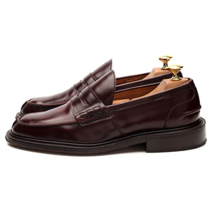 Tricker's 'James' penny loafer in burgundy polished calf. In excellent used condition, showing minor signs of wear.