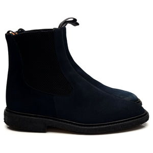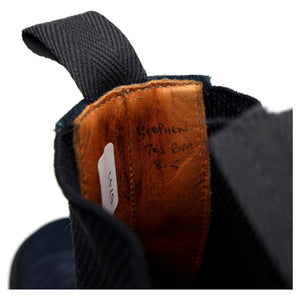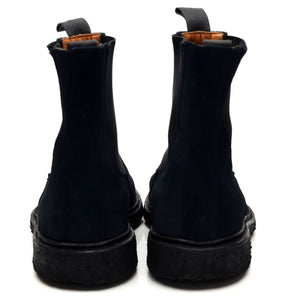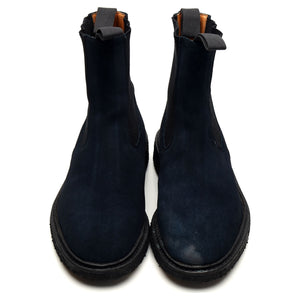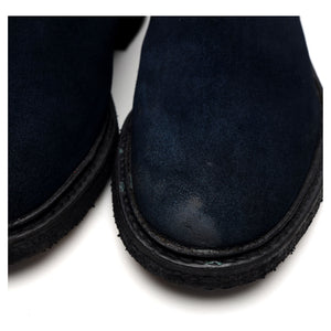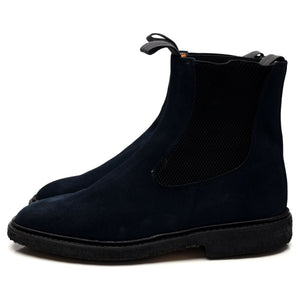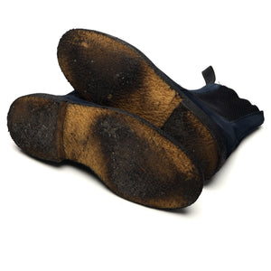 Tricker's 'Stephen' Chelsea boot in navy blue suede. In very good used condition, showing moderate signs of wear.