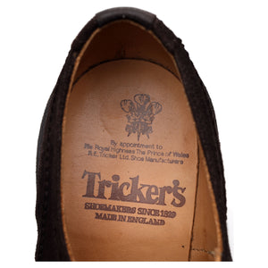 Tricker's 'Bourton' derby brogues in dark brown suede. In excellent used condition.