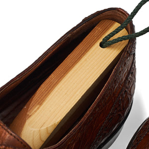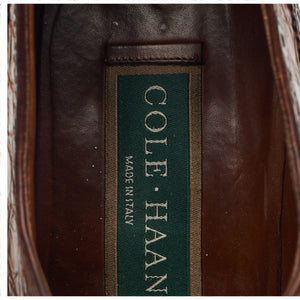 Cole Haan '1763' cap toe derby in tan brown faux Crocodile grain calf. In excellent used condition, showing minor signs of wear.