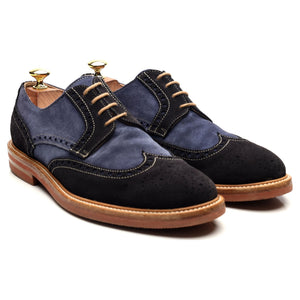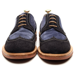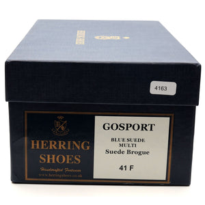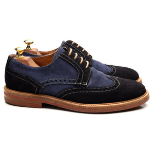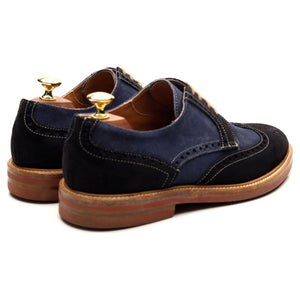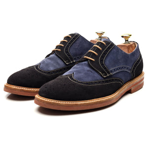Herring 'Gosport' derby brogues in navy blue and blue suede. In excellent used condition, showing minor signs of wear.
