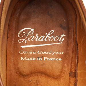 Paraboot plain toe derby in tan brown calf. In very good used condition, showing moderate signs of wear.
