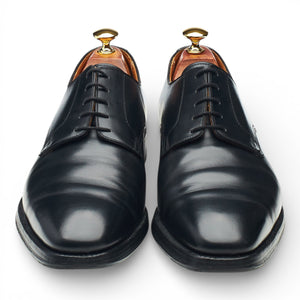 Crockett & Jones 'Dover' plain toe derby in black calf. In excellent used condition, showing minor signs of wear.