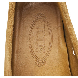 Tod's Gommino driving loafers in sand suede. In excellent used condition, showing minor signs of wear.