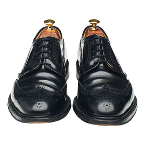 Church's 'Grafton' derby wingtip brogues in black polished calf. In very good used condition, showing moderate signs of wear and light creasing across the vamps.