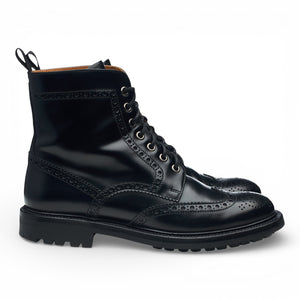 Church's 'Angelina 2' brogue boots in black polished calf. In excellent used condition, showing minor signs of wear.