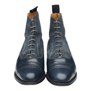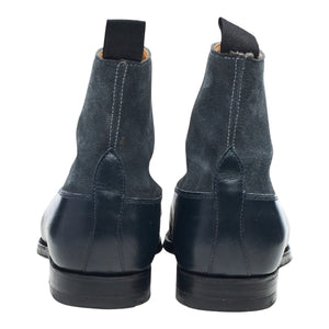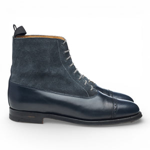 Crockett & Jones 'Chatsworth' balmoral boots in navy blue calf and blue suede. In excellent used condition, with minor signs of wear.