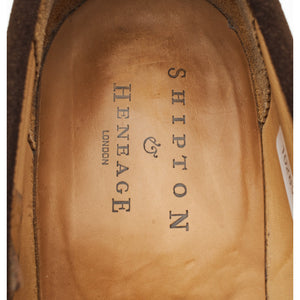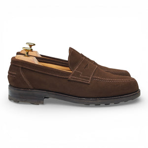 Alfred Sargent manufactured for Shipton & Heneage'Hendon' penny loafers in brown suede. In excellent used condition, showing minor signs of wear.