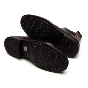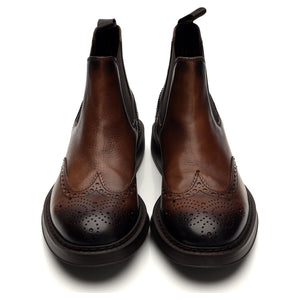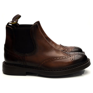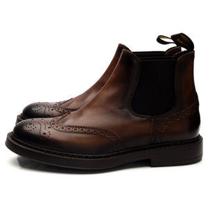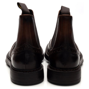 Doucal's 'Beatles' brogue Chelsea boots in dark brown leather. In excellent used condition, showing minor signs of wear.