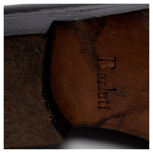 Berluti apron front derby in black calf. In very good used condition, showing moderate signs of wear.