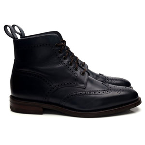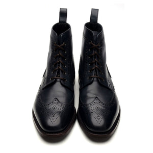 Loake Design 'George' brogue derby boots in navy blue calf. In excellent used condition, showing minor signs of wear.