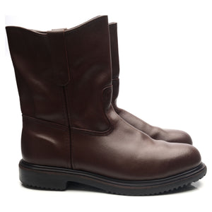 Red Wing '8264' 9-inch Pull-On boots with dark brown leather. In excellent used condition, with minor signs of wear.
