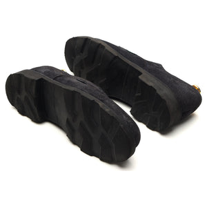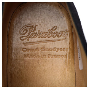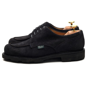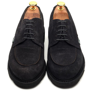 Paraboot 'Chambord' apron toe derby in navy blue suede. In excellent used condition.
