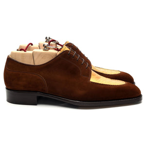 Vass 'Kaan' derby in tan brown suede and gold ostrich. In excellent condition.