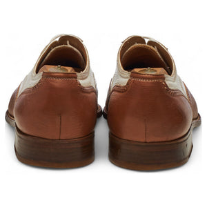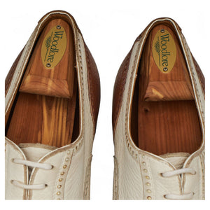 Gravati oxford, spectator brogues, in tan brown and white grain calf. In excellent used condition, showing minor signs of wear.