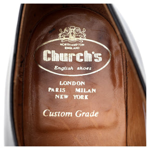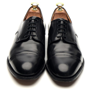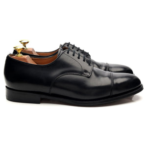 Church's cap toe derby in black calf. In excellent used condition, showing minor signs of wear.
