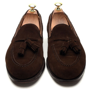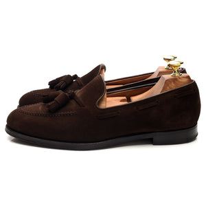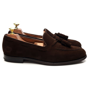 Crockett & Jones 'Cavendish 2' tassel loafers in dark brown suede. In excellent used condition, showing minor signs of wear.