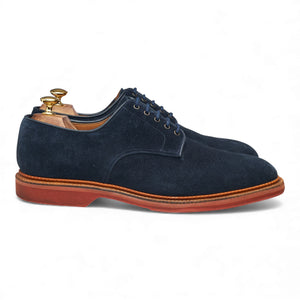 Crockett & Jones 'Cornell' plain toe derby in 'Ocean' blue repello suede. In excellent used condition, showing minor signs of wear.