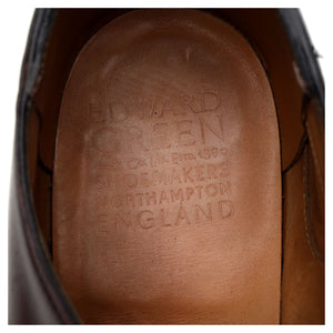 Edward Green 'Windermere' plain toe derby in burgundy Shell cordovan leather. In very good used condition, showing moderate signs of wear, with creasing to the vamps.