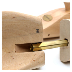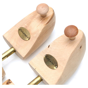 Natural wooden shoe trees, showing moderate signs of wear.