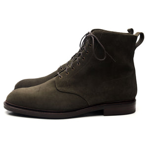 Carmina '80179' plain toe boots in dark green suede. In excellent condition.