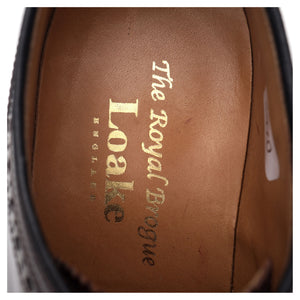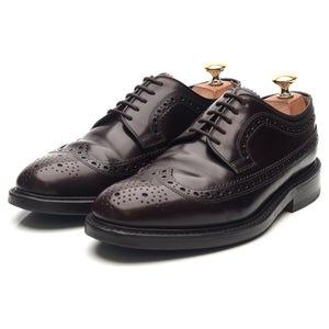 Loake 'Royal Brogue' derby brogue in burgundy polished calf. In excellent used condition, with minor signs of wear.