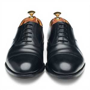 Crockett & Jones 'Bedford' cap toe oxford in black calf. In excellent used condition, showing minor signs of wear.