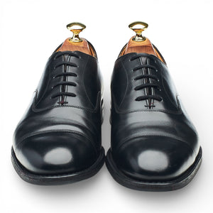 Church's 'Consul' cap toe oxford in black calf. In very good used condition, showing moderate signs of wear and light creasing across the vamps.