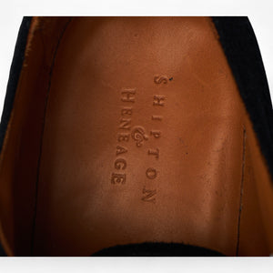 Shipton & Heneage 'Lark' oxford brogues in black suede. In excellent used condition, showing minor signs of wear.