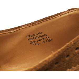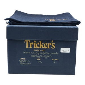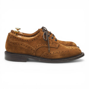 Tricker's 'Bourton' derby brogues in snuff brown repello suede. In excellent used condition, showing minor signs of wear.
