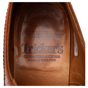 Tricker's 'Bourton' derby wingtip brogues in 'marron' antique tan brown calf. In excellent used condition.