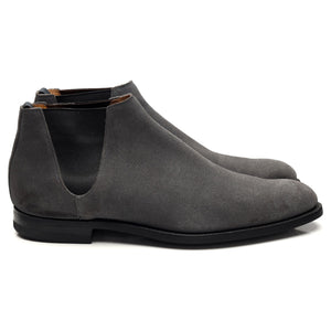 Crockett & Jones 'Cranleigh' low cut Chelsea boot in grey suede. In excellent used condition, showing minor signs of wear.