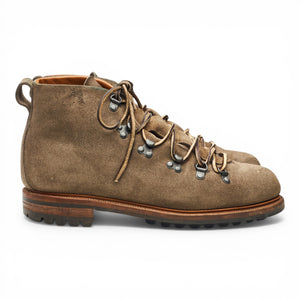 Viberg 'Hiker' hiking boots in stone brown suede. In excellent used condition, showing minor signs of wear.
