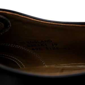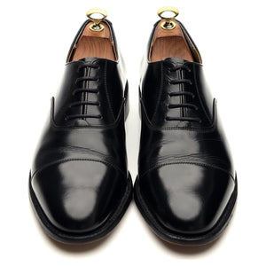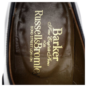 Barker manufactured for Russell & Bromley cap toe oxford in black polished calf. In excellent  used condition, showing minor signs of wear and light creasing across the vamps.