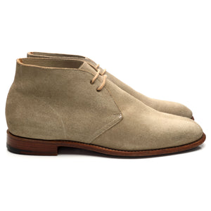Church's 'Sahara' unlined chukka boots in beige suede. In excellent used condition, with minor signs of wear.