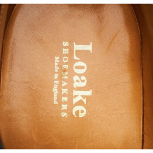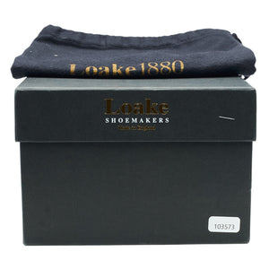 Loake 'Sovereign' derby longwing brogues in black polished calf. In excellent used condition, showing minor signs of wear.