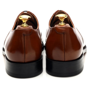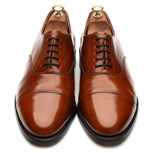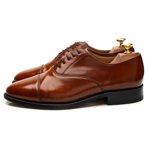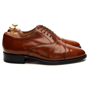 Barker cap toe oxford in tan brown polished calf. In excellent used condition.