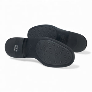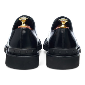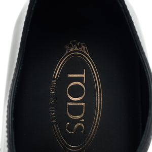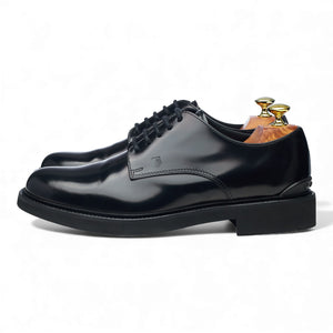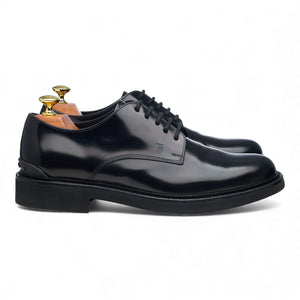 Tod's plain toe derby in black polished calf. In excellent used condition.