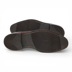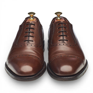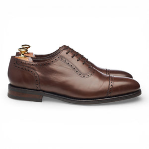 Loake 1880 'Fleet' oxford semi brogues in dark brown calf. In excellent used condition, showing minor signs of wear.