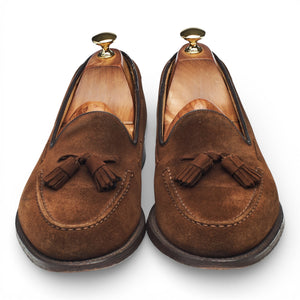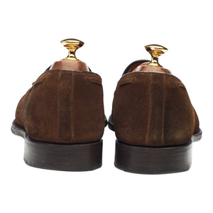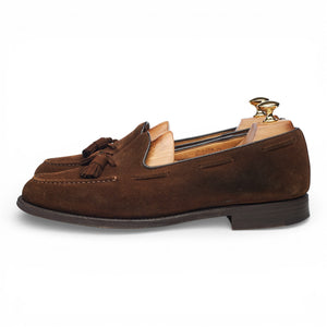 Church's 'Keats' tassel loafer in brown suede. In excellent used condition, showing minor signs of wear.