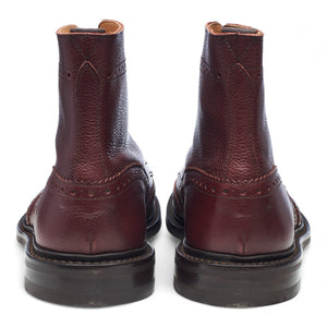 Tricker's 'Stow' brogue boots in burgundy scotch grain calf.