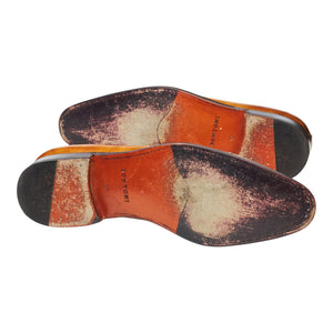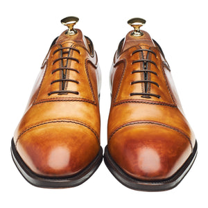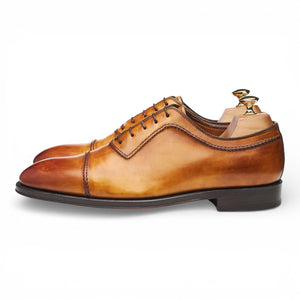 Bontoni cap toe oxford in tan brown burnished calf. In excellent used condition, showing minor signs of wear.