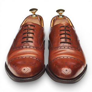 Church's 'Weymouth' oxford brogue in tan brown calf. In excellent used condition, showing minor signs of wear.